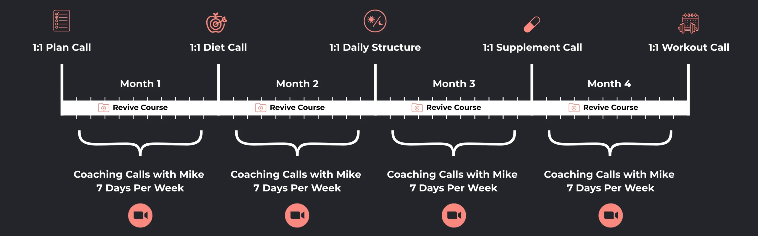 I will be on calls with you daily helping you to make targeted adjustments to your diet, supplement stack, exercise routine, daily structure, etc.